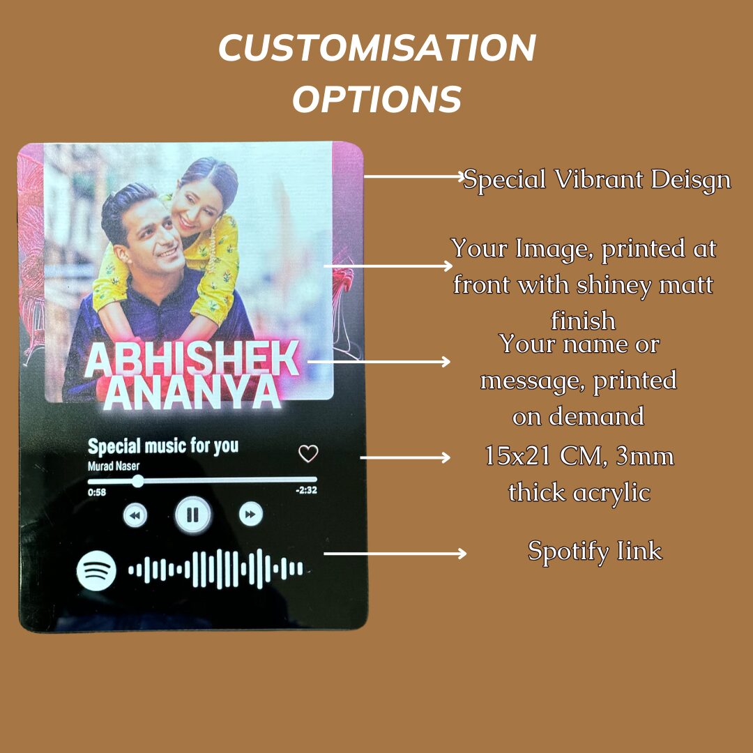 Discover the elegance of music and memories encapsulated in our Black Acrylic Photo Spotify Frame. This 6×9 inch frame, crafted from premium black acrylic, is not just a photo holder, but a unique musical keepsake. Select this sleek, durable option to showcase your favorite moments in style.