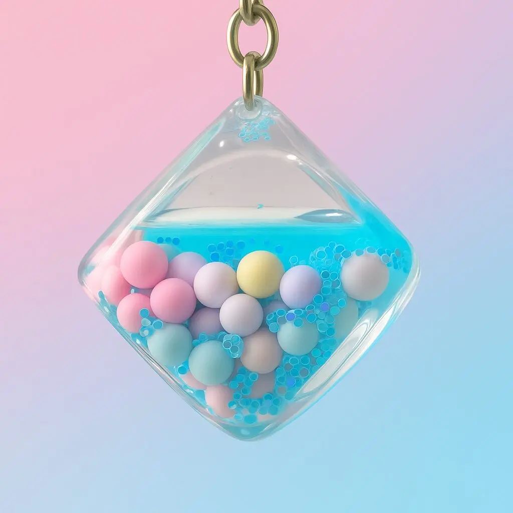 - 🌈 Colorful Bubble Cube – Transparent resin cube filled with soft pastel bubbles