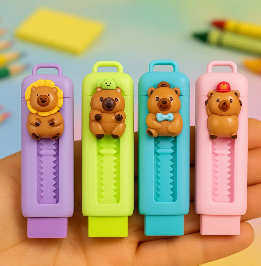 🐻 Adorable Designs – Each eraser features charming animal characters like bear, bunny, cat, and lion with playful expressions that kids will love.