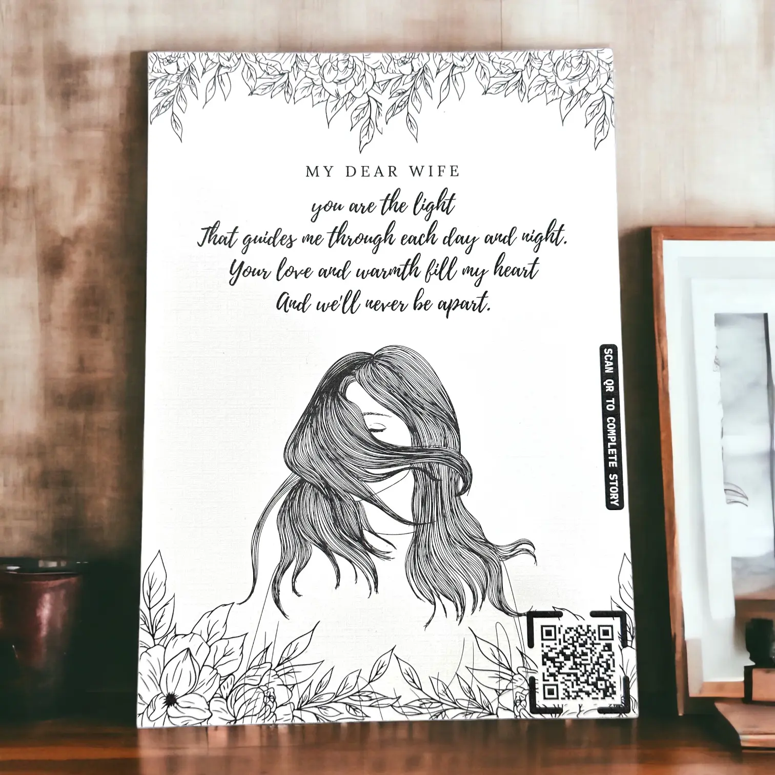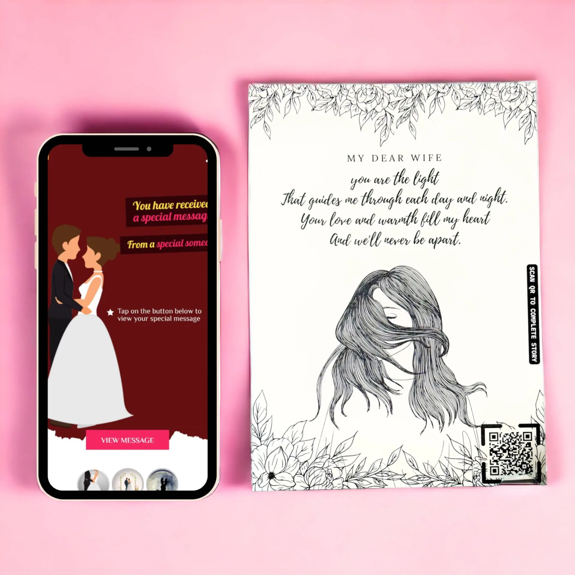 - With a simple scan, your dear wife will be transported to a heartfelt video message, tailor-made exclusively for her. She’ll witness your genuine love and admiration as the words from your heart come alive on the screen before her eyes.