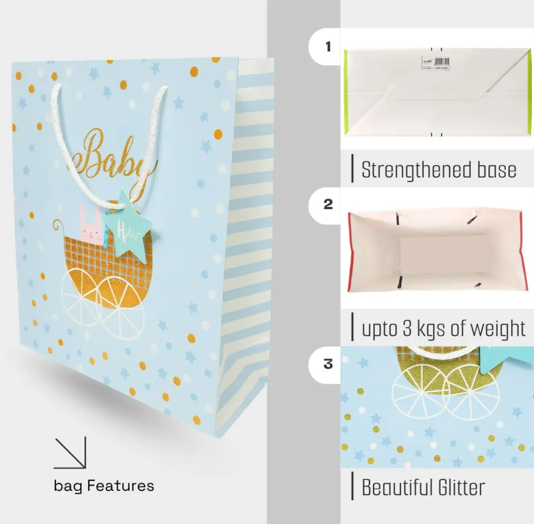 Baby Shower Gift Bags | Cute Baby Paper Bags for Return Gifts & Party Favors