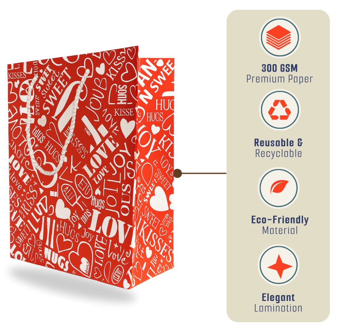 Enhance your gifting style withRed Decorative Gift Bags. Designed with vibrant red color, bold LOVE & heart patterns, and sturdy rope handles, these bags add a festive and elegant touch to any occasion.