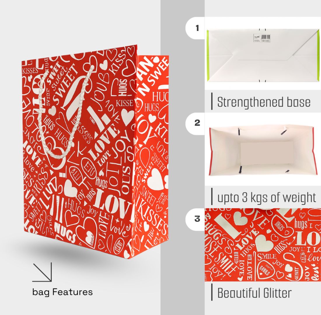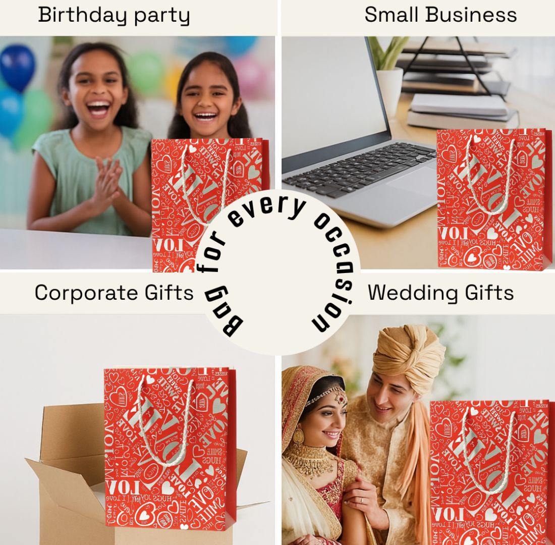 Crafted from premium quality paper, these reusable bags are eco-friendly, lightweight, and durable – perfect for carrying gifts, clothes, chocolates, accessories, or party favors. Ideal for Valentine’s Day, birthdays, weddings, anniversaries, return gifts, and festive celebrations, they save you from the hassle of wrapping paper.