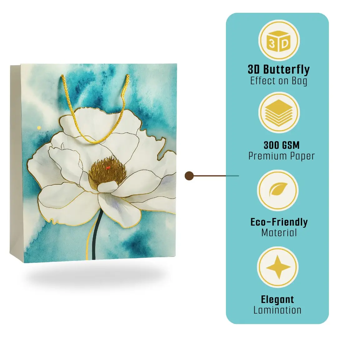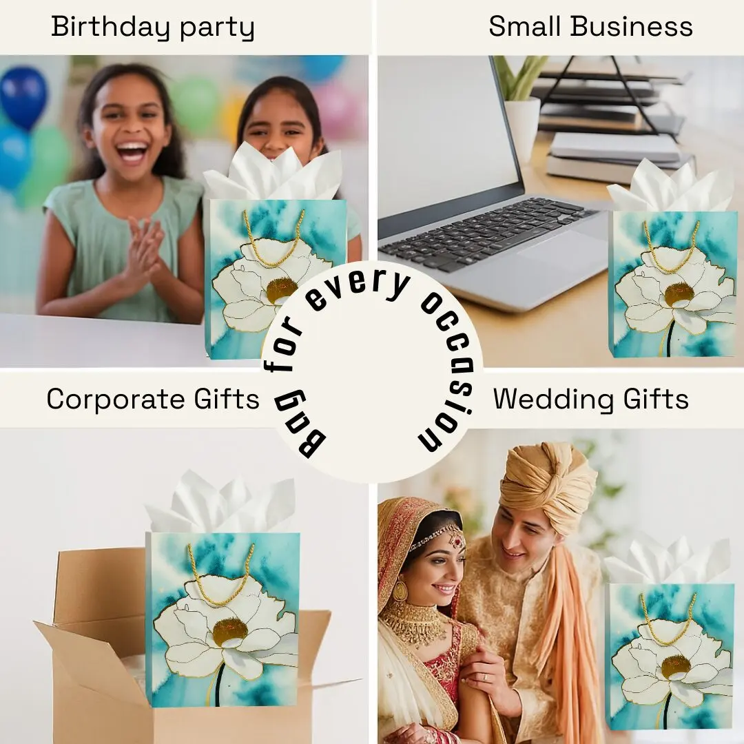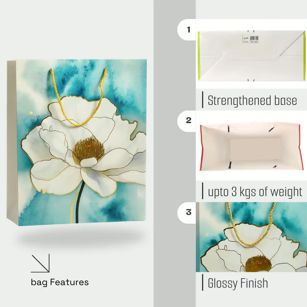 Add elegance and charm to your celebrations with these floral print gift bags designed with vibrant flower patterns and sturdy rope handles. Made from durable paper material, these reusable gift bags are perfect for carrying gifts, clothes, books, chocolates, or party favors. The premium floral design with glossy finish makes them suitable for birthdays, weddings, anniversaries, festivals, and return gifts.