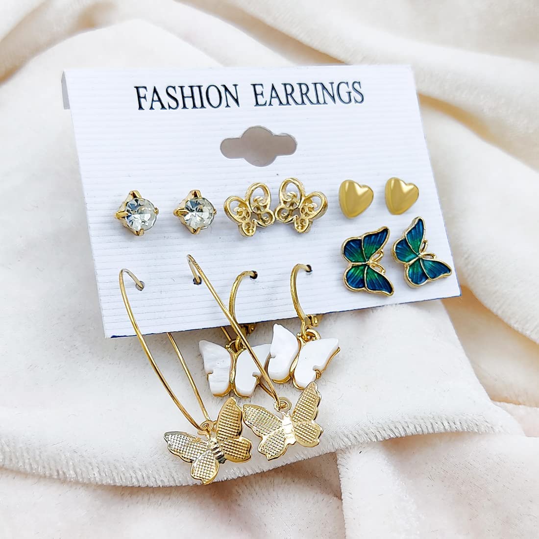 The latest trend earrings with pretty butterfly theme are the pick of the season. The designs are adorable and sure to make heads turn. Pair the green butterfly studs with any family of white color dresses and they will stand out. The cute butterfly hoops will look amazing with any denim dress or jeans. And you can pair the studs with anything from your everyday look. So go ahead and mix and match. These earrings are perfect for anyone looking to add a little bit of light and charm to their everyday look. The colors and designs will help you stay trendy no matter what.