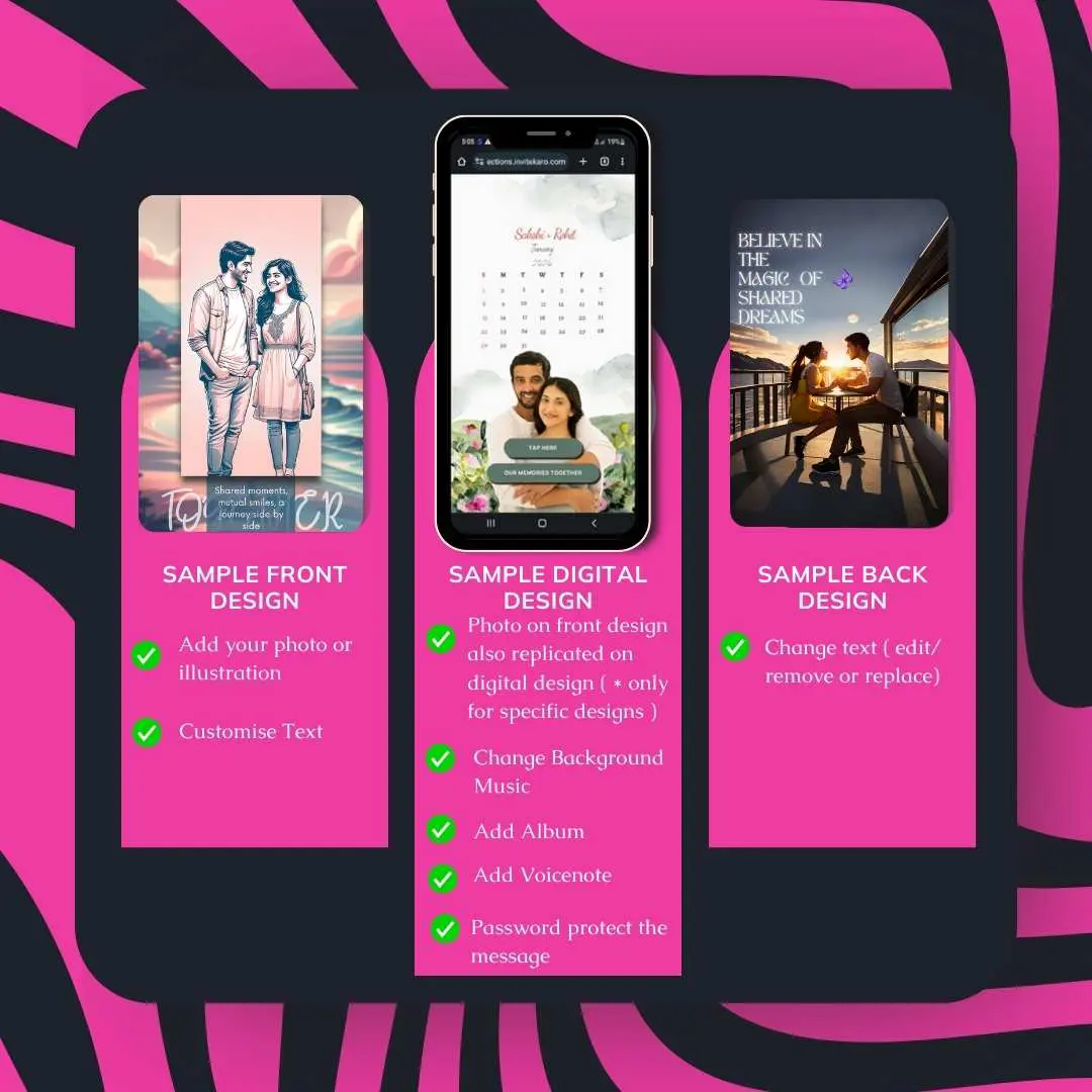 📱 Digital Touch: Customize this romantic gift for boyfriend:- LoveZap’s digital message with background music, an album, and a personal voice note. Secure your special moments with a password-protected URL. 📱