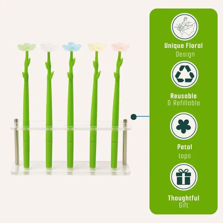 FLORAL GEL PENS: Set of 5 beautifully designed gel pens with smooth ink flow, perfect for decorative writing and artistic journaling.